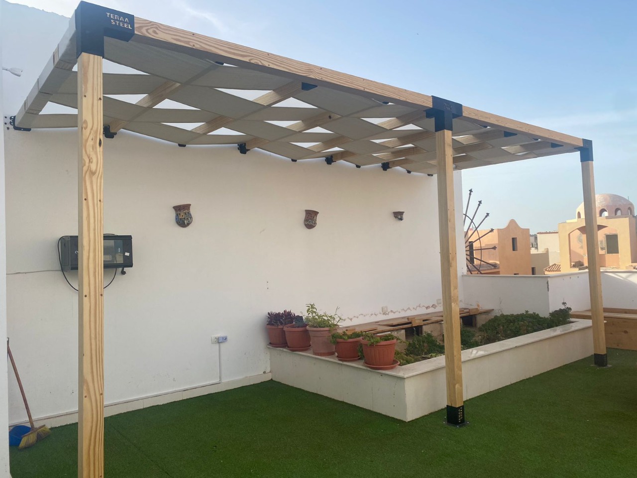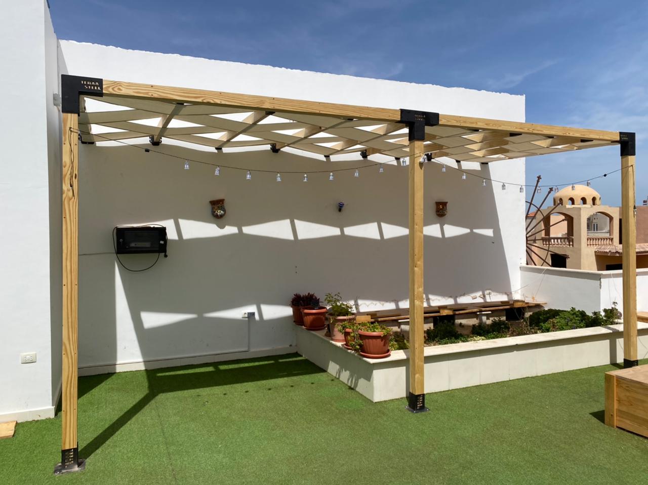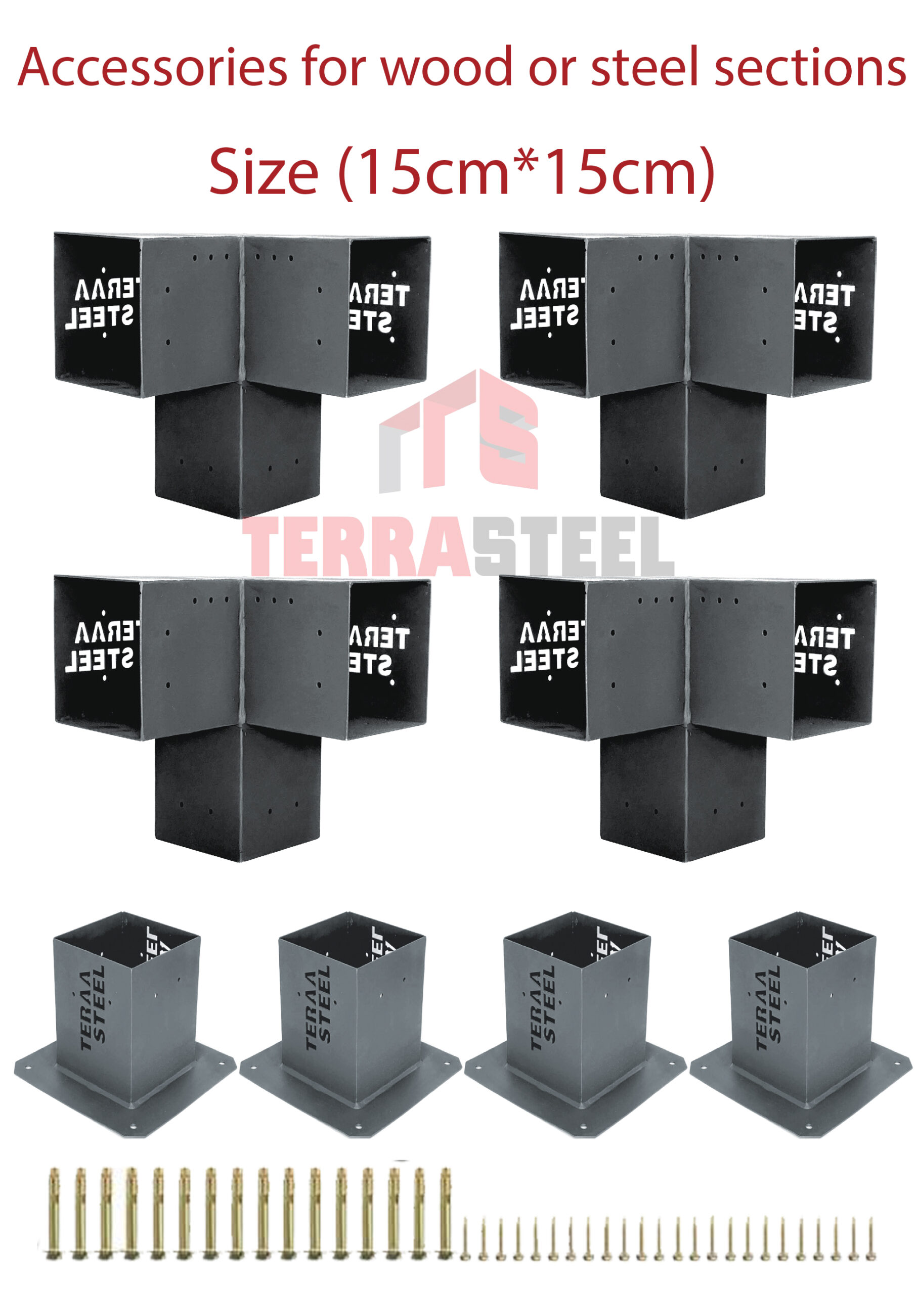 Terra steel has been working for a practical solution that is easy to all the categories of the jaw and installation of any sector, whether wooden or steel, These metal pieces are used to assemble sectors (wood – metal – PVC – aluminum) to work on the form of pergola, a restaurant or container or to make a handle on the wall or a ceiling without cracking in the wall.